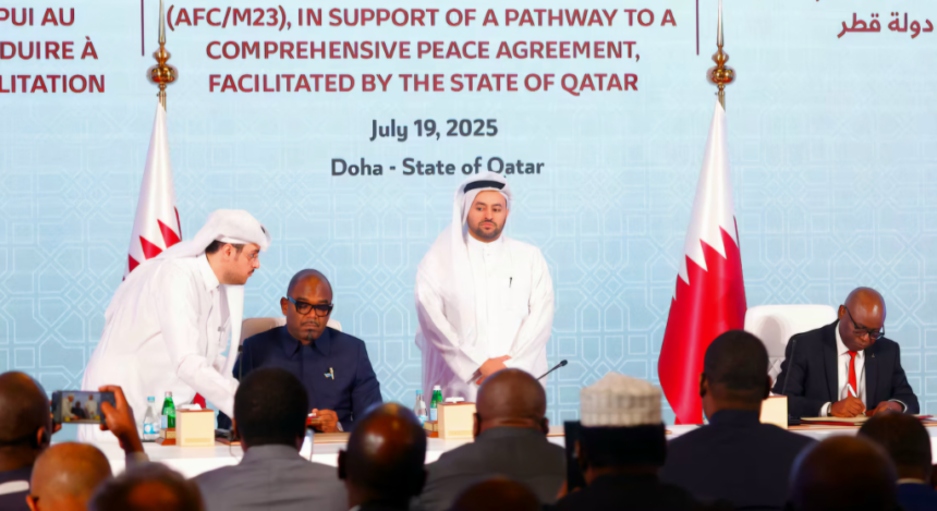 Vendredi 25 juillet 2025 à Goma, la délégation de l’AFC/M23 aux pourparlers de Doha, conduite par Benjamin Mbonimpa, a animé un point de presse consacrée à la Déclaration signée 5 jours plus tôt en terre qatarie. Pour exprimer des distances avec les engagements pris, essentiellement. Interprétant l’Accord de principes intervenu à Doha, le secrétaire exécutif du M23/AFC explique que «les parties conviennent : le gouvernement de Kinshasa et l’AFC/M23 se sont engagés à faciliter le retour sûr, volontaire et digne des réfugiés et de personnes déplacées dans leur milieu d’origine en conformité, nous nous sommes engagés l’AFC/M23 et le gouvernement de Kinshasa nous deux ensemble, nous allons faciliter le retour sûr, sécurisé et digne de tous les déplacés internes  et des réfugiés, nous allons le faire en conformité avec la tripartite notre pays va signer les accords tripartite avec tous les pays d’asile la Zambie, la Tanzanie, Burundi, Kenya, l’Ouganda, le Rwanda et même l’Angola, il y a des réfugiés congolais qui sont en Angola».