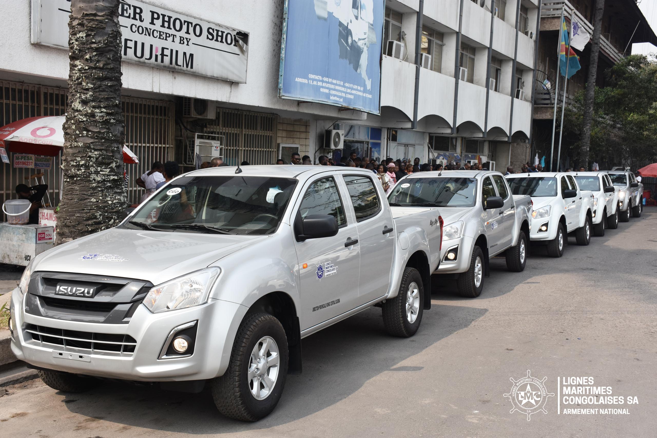 Lignes Maritimes Congolaises SA (LMC) a franchi un pas de plus dans sa dynamique de modernisation, avec la remise officielle ce jeudi d’un premier lot de cinq véhicules pick-up neufs de marque Isuzu au directeur général Jean-Claude Mukendi Mbiyamuenza, devant le siège social à Kinshasa. Les clés ont été remises solennellement par le représentant de Prodimpex, concessionnaire officiel de la marque.
