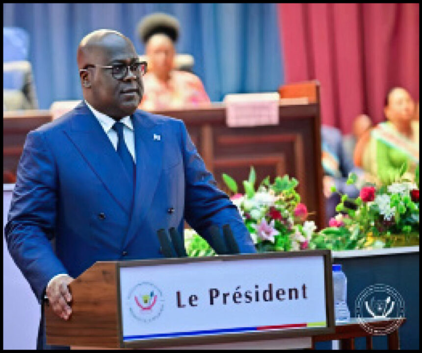 Devant le Congrès réuni lundi 8 décembre au Palais du Peuple, le président Félix-Antoine Tshisekedi a entamé son discours sur l’état de la Nation en dévoilant les quatre axes qui guideront désormais la réponse de l’État face à la guerre d’agression du Rwanda contre la RDC à l’Est. «Quatre priorités s’imposent désormais à notre action», a-t-il annoncé, avant de décliner une feuille de route qui, selon lui, doit ancrer durablement la paix. Le chef de l’État a, de prime abord, insisté sur la nécessité «d’obtenir le retrait total et vérifiable de toute force armée étrangère opérant sur notre territoire, qu’elle soit officielle ou dissimulée derrière des groupes relais».