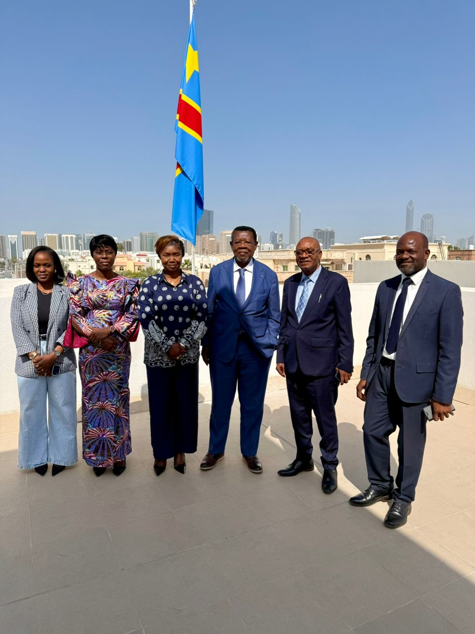 En l’absence de l’ambassadeur empêché, la délégation a été reçue par le ministre conseiller à l’Ambassade de la RDC à Abou Dhabi, monsieur Aduyenzi Kitulu. Les échanges se sont déroulés dans un climat empreint de cordialité et de coopération, autour de la vision, des ambitions et des perspectives de déploiement de LMC, SA dans la région du Golfe.