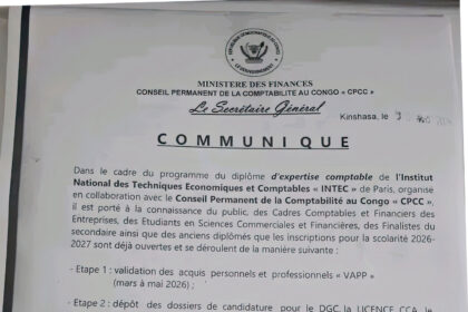 Dans un communiqué, le Conseil permanent de la comptabilité au Congo (CPCC)…